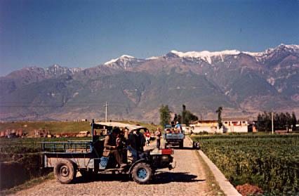 Two photos of our bike ride from Dali to Lake Er. East of the city the flat plains are dominated by cultivated farmland.