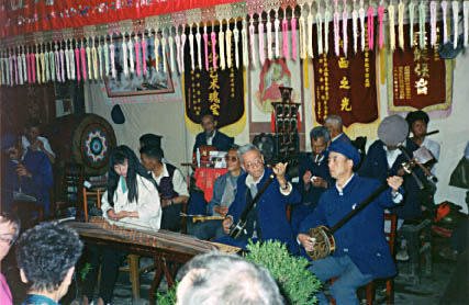 The Naxi concert. The woman in front playing the zither-like instrument is one of the few young apprentices in the orchestra.