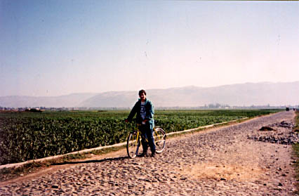 Two photos of our bike ride from Dali to Lake Er. East of the city the flat plains are dominated by cultivated farmland.